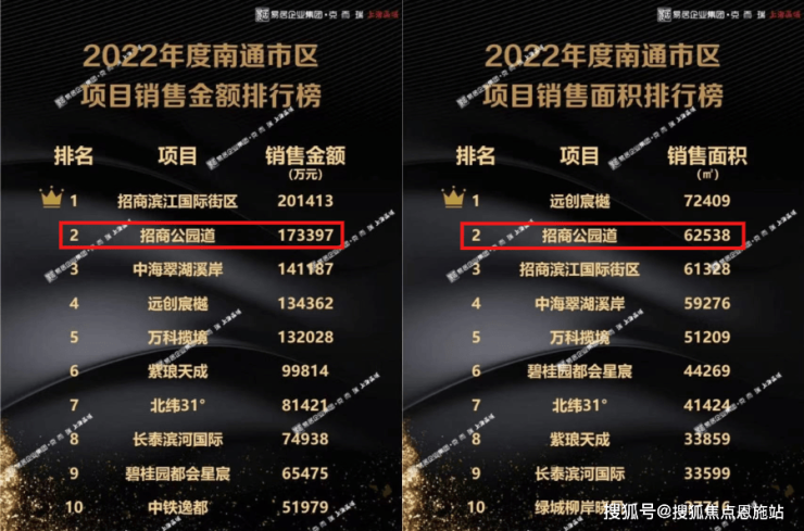 2022年招商公园道销售额约17.34亿元,位居南通第2,当之无愧的中创市场领跑者。如果按照单盘计算,销售额更是达到了整个南通TOP1