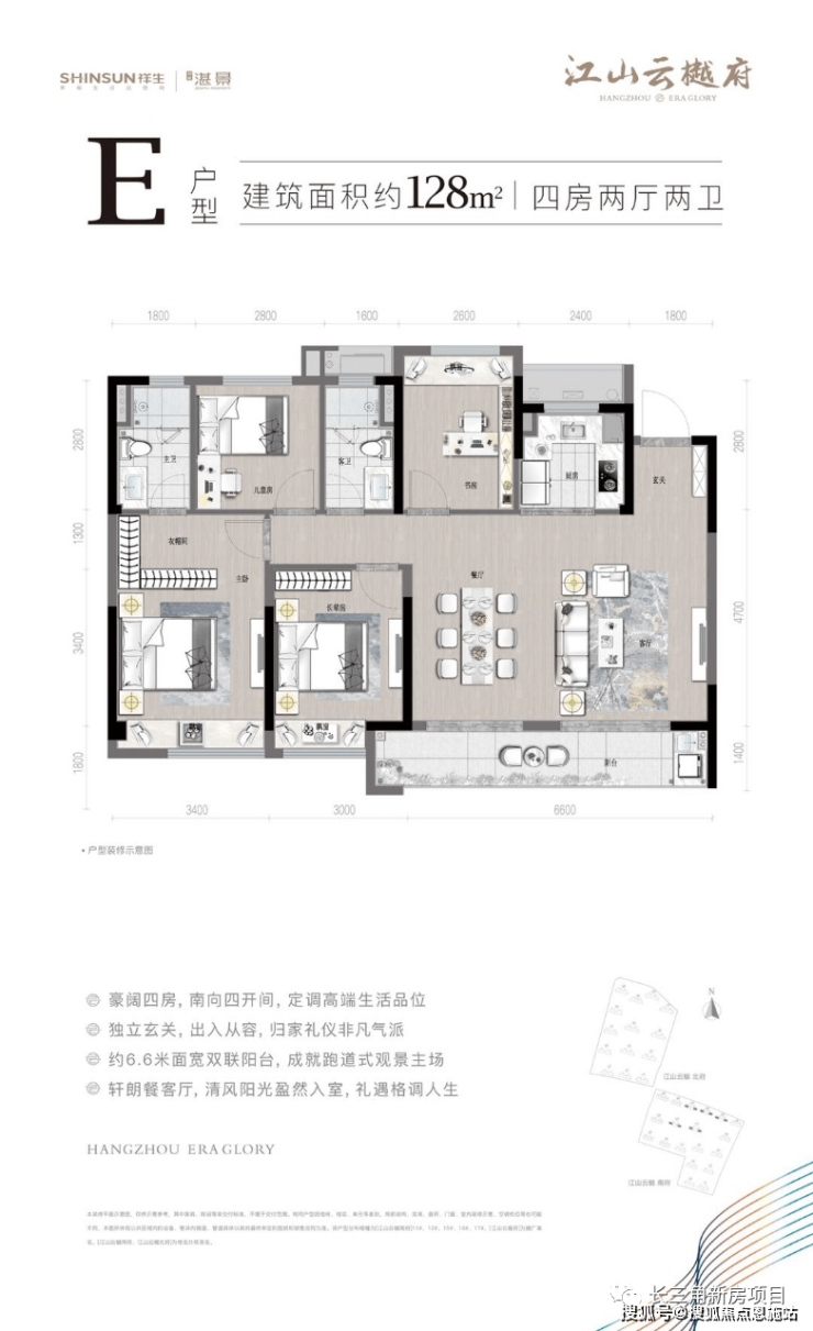 南府:占地面积约7.9万㎡,总建筑面积约29万㎡,容积率2.6,绿地率35%;