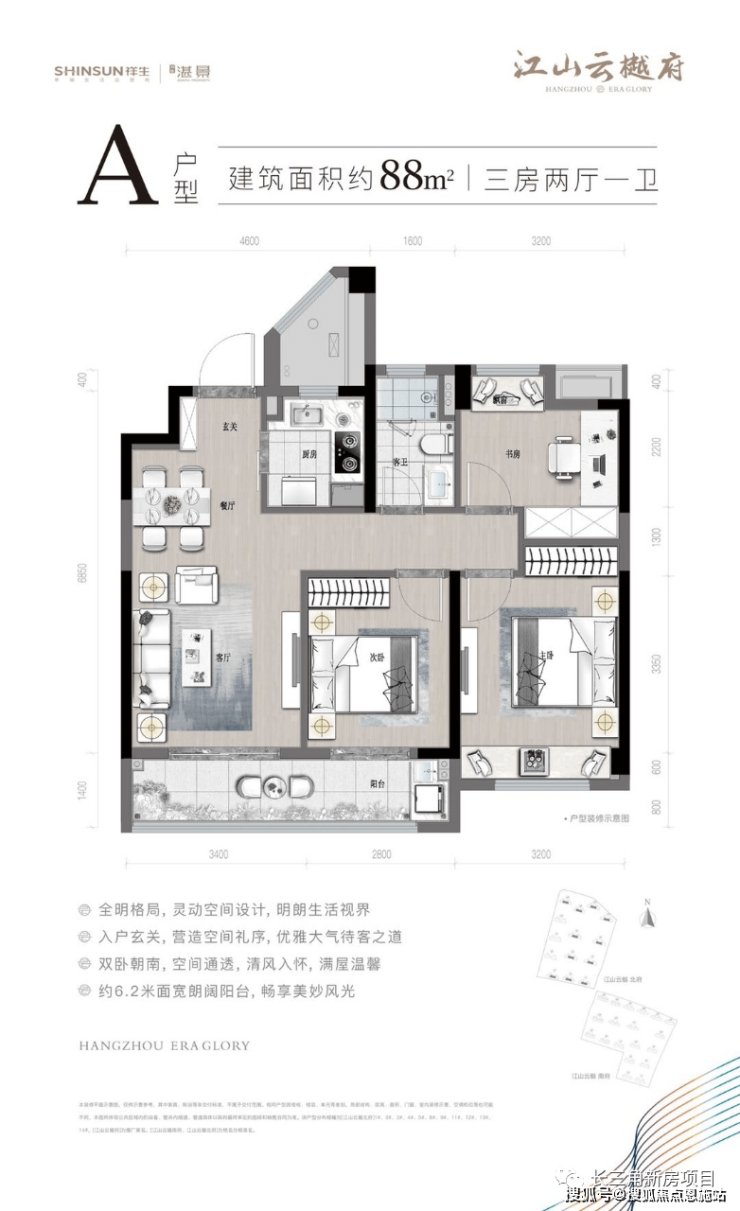 北府:占地面积约5.7万㎡,总建筑面积约20万㎡,容积率2.5,绿地率35%;