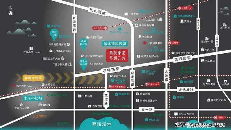 楼盘位于西湖区紫金港科技城,靠近地铁4号线和2号线。