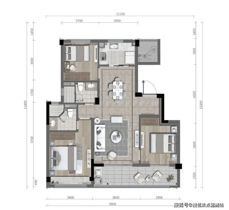 来看启岸城99㎡大三房洋房