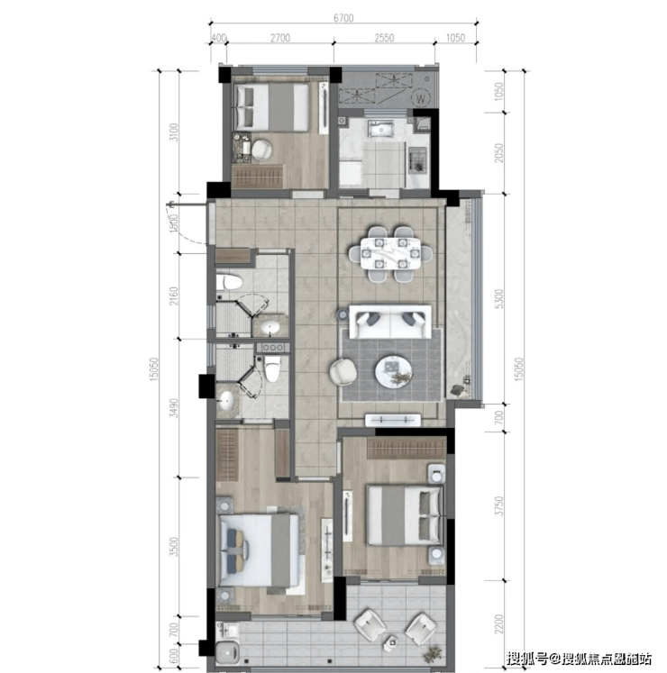 亮点5:约6.6米双联阳台。客厅与次卧,连着一个跑道般的双联大阳台,适合莳花弄草、喝茶下棋。
