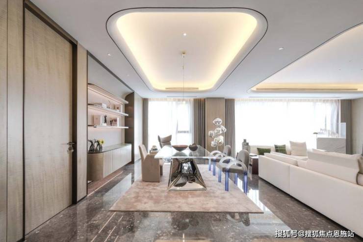 在建筑外部立面,采用整栋楼纯石材干挂与玻璃幕墙结合,庄重的价值感与现代流线融合出经典之美。多玻璃少墙体的设计,也让整个室内空间拥有了360°的全幕环景视野,将窗外的纯正法式两大中央景观公园坐收眼底……一层一户的大胆设计,追求的是居住者的绝对享受,大平层的居住真谛,在丰盛九玺被诠释得淋漓尽致。