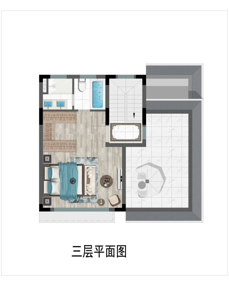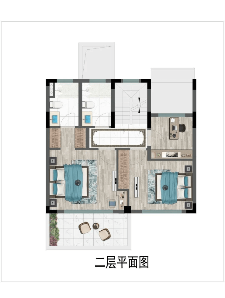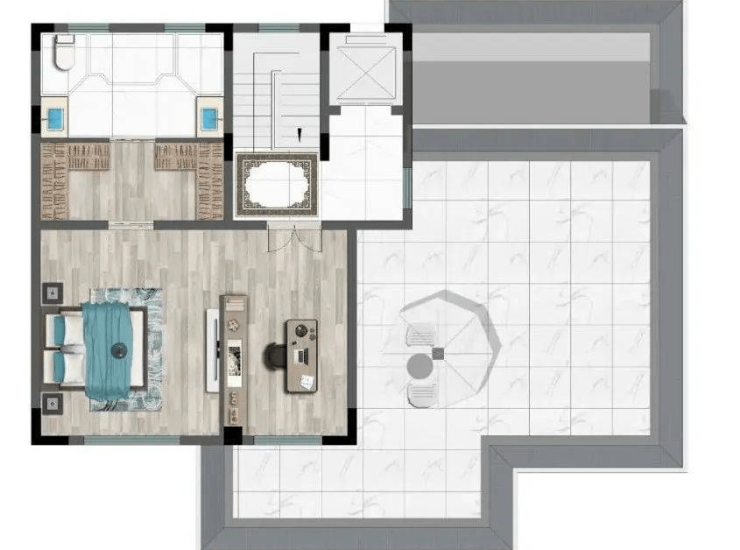 大而明亮的卧室,独立而静谧的书房,男女分区的双衣帽间、可以摆下“豪华四件套”的主卫,还有面积比一个房间还大的超级露台,每一个都能精准地命中女主人的心。