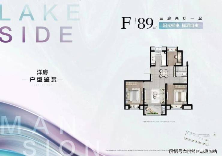 约89㎡3房2卫,是同面积段少有的三开间南向设计,且动线设计合理,动静分区,互不打扰,堪称低预算上车3房的绝佳机会!