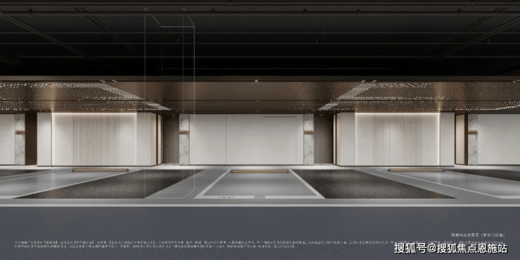 汽车坡道运用了氛围照明,并结合了星空顶的设计,突显出其独特性。玄关区域通过线条灯光、环氧磨石地面、星空顶以及柱面石材的装饰,增强了业主回家时的仪式感和空间的品质感。