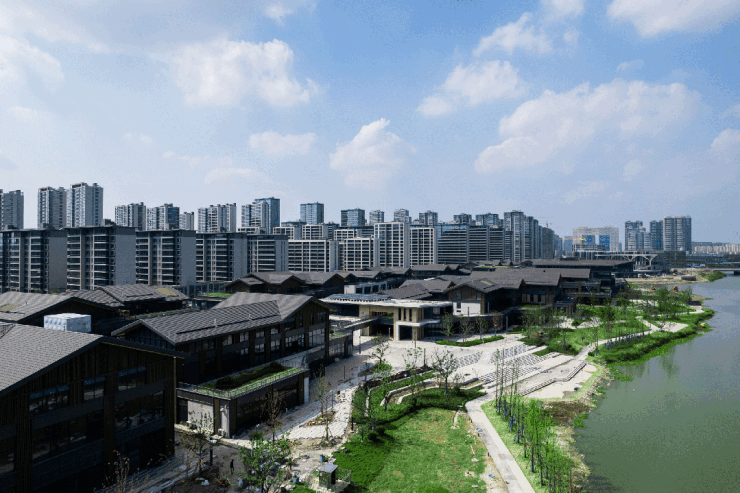慈溪作为越窑青瓷发源地之一、海上陶瓷之路的重要起点,拥有着绵长的瓷文化,以及江南水乡的温婉柔情。延承这一在地文化,深入到新河坊·云泰Park的呈现,错落有致的建筑形态下,兼容着多元特色空间。以交融在此的潮流文化、水文化为灵感,项目筑就了三大景观区块——