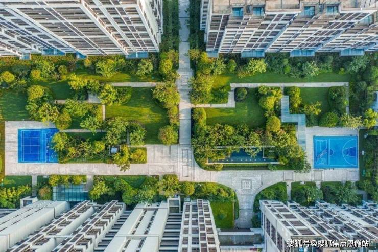 尚未交付,园林中已然茂盛葱茏,精致铺装之外,每一寸土壤都被浓浓绿茵“地毯式”铺陈,丝毫没有匆忙赶工的粗糙。