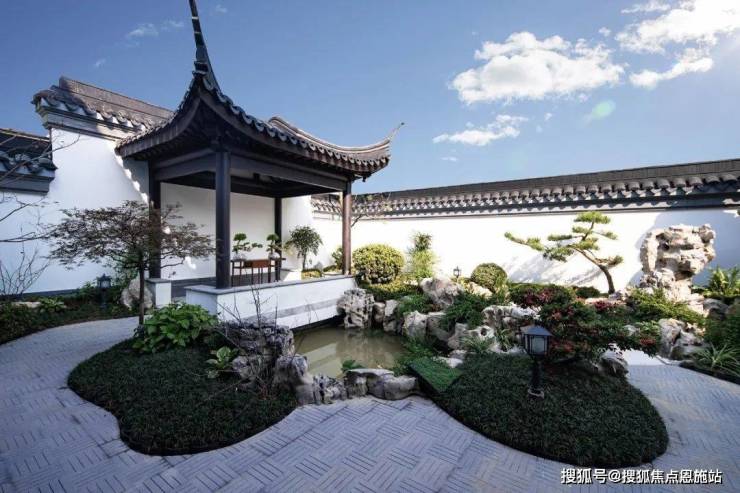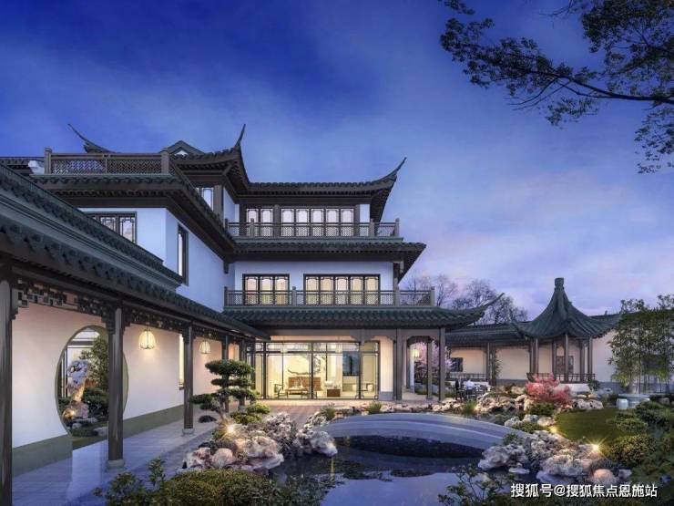 在园林形制上,引入曲石折桥、掇山理水、镜湖邀月、湖石蹬道等节点,亭台、石桥、连廊、水系巧妙而设,动静之间,变幻无穷……借以山水写意,于咫尺之内造乾坤,一个“微缩版”的苏州园林亦可“私藏”。
