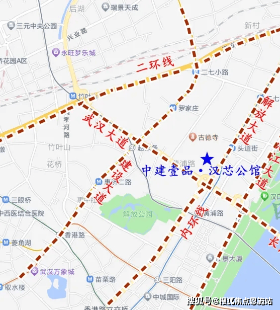 中建壹品汉芯公园位于汉口解放大道头轻轨1号线道街站旁,楼市中属于汉口滨江商务区,行政划分属于江岸区,距离内环线约300米,距离二环约1.6公里。