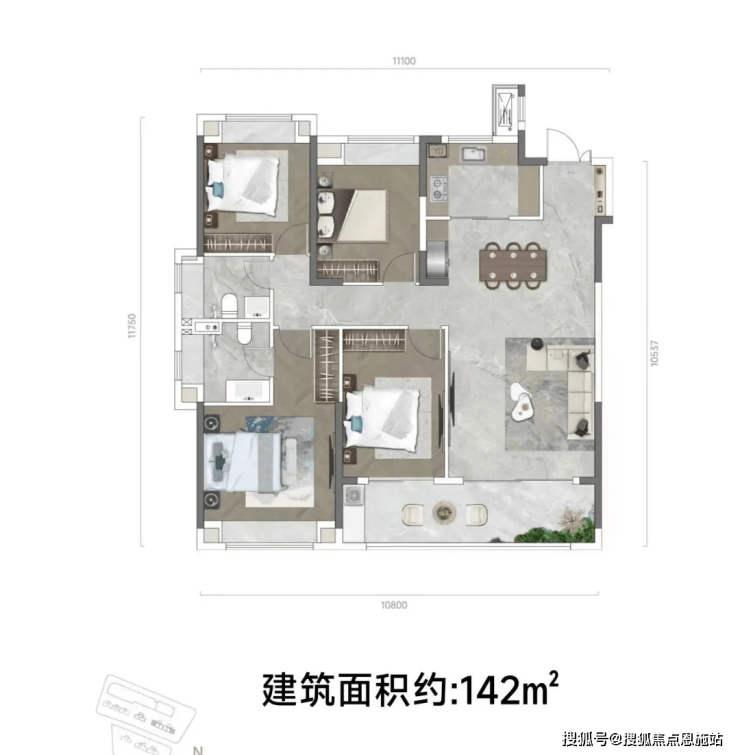 在售情况:122、136、142㎡三房、四房
