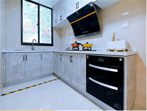 效果图—— 主墙面为米色真石漆,通过米色和灰色交替搭配,形成有韵律的色彩变化