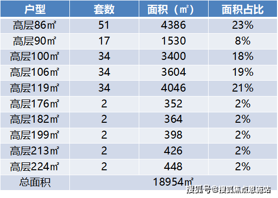 户型包括86、90、100 、106 、119、176、182 、213、224㎡