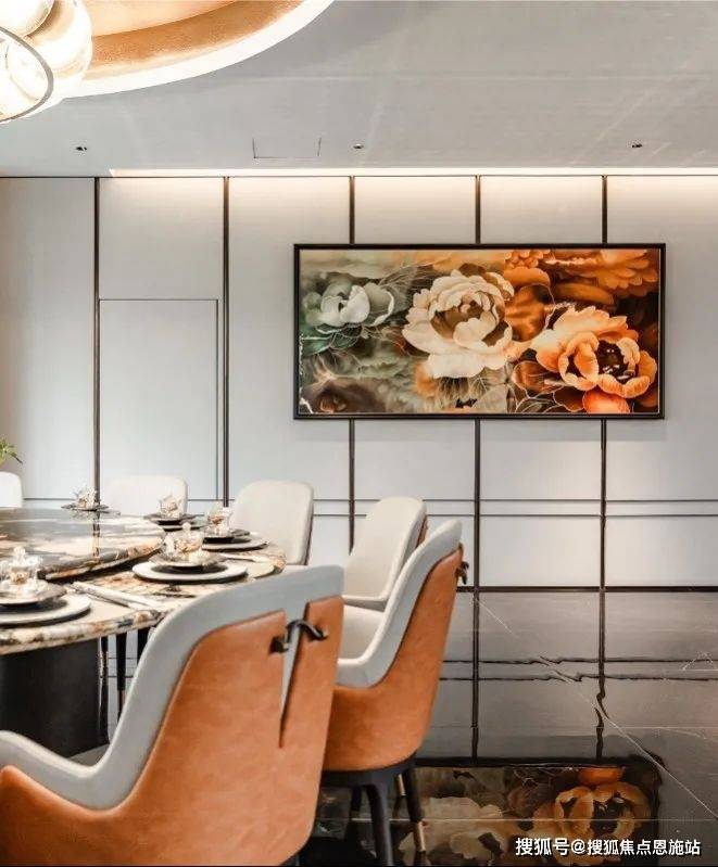 比如私宴会客厅,将餐厅、厨房、水吧、茶台等统统配齐,且餐厅背景墙采用的都是整面岩板,商务宴请时格调拉满!