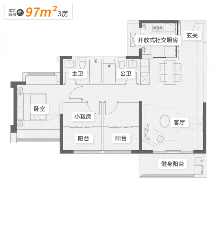 丨建面约97㎡三房