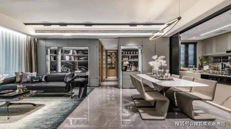 LDKG设计,将客、餐、厨、阳台四大公区融为一体,打破传统客厅带来的隔离感,为家庭创造更多的互动空间,营造和谐的家庭交流氛围。