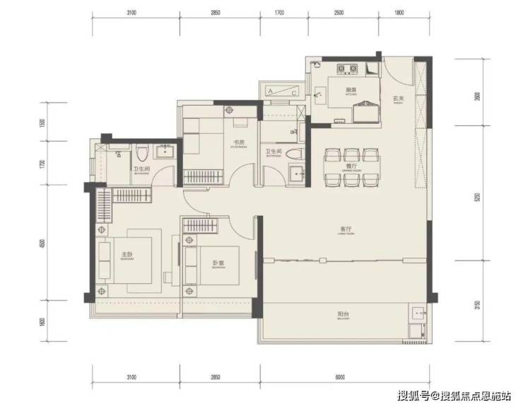首先,该户型作为 整个项目ZUI小的户型,却能拥有步入式对景玄关入户;客餐、阳台做到一字型串联,形成近8m进深空间,气派尺度不彰自显。