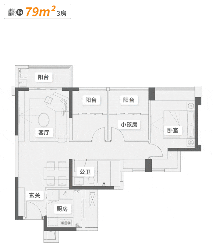 丨建面约79㎡三房