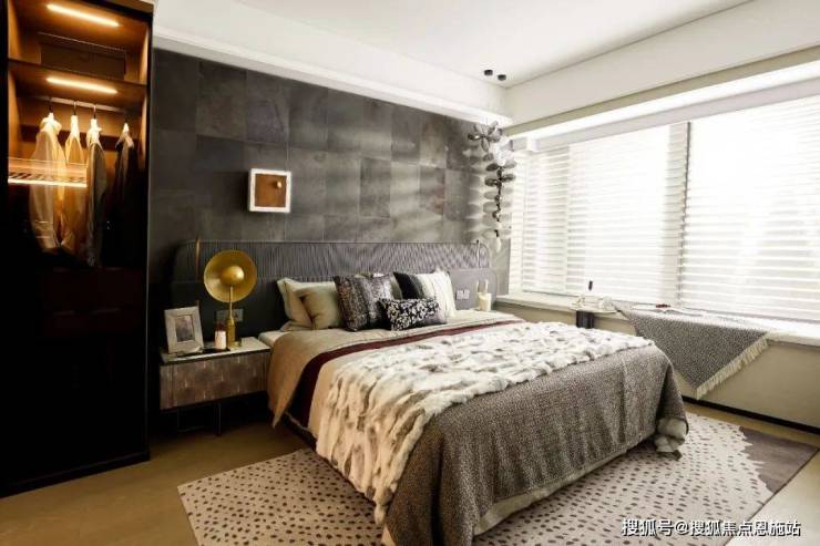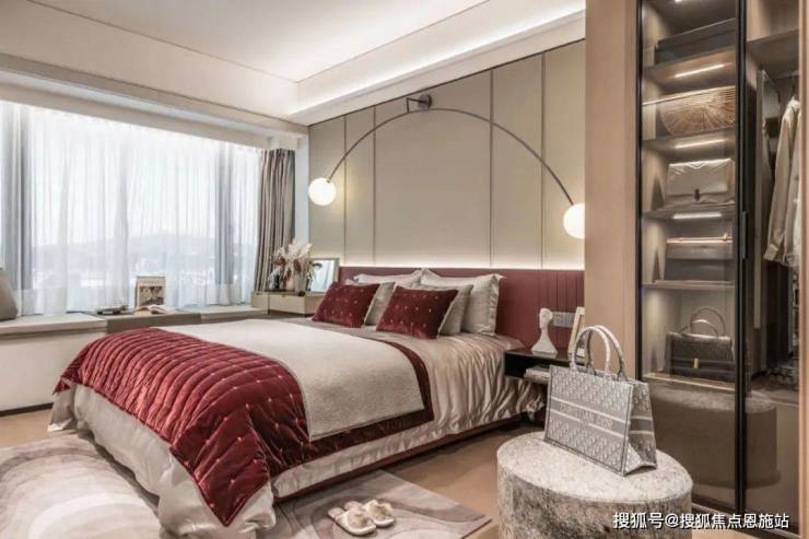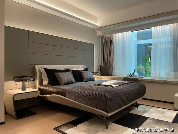 再设180°观景朝南大主卧:转角玻璃窗,极大面积通透采光,使原本全明户型的空间备受阳光专宠。