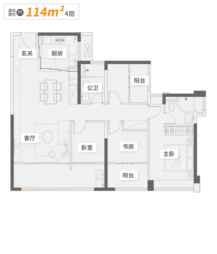 丨建面约114㎡四房