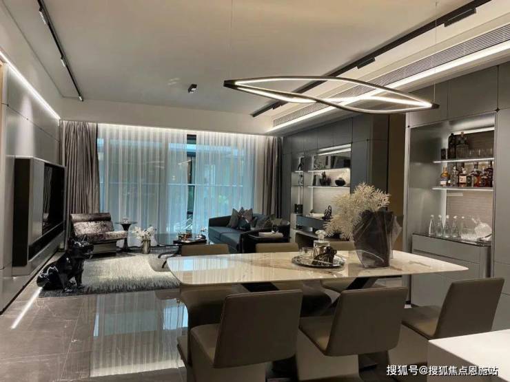 客厅使用四寸屏,控制新风、客厅空调、灯带调光,让智能家居生活触手可得。此外,全屋新风系统、全屋VRV东芝空调、智能化配置、智能电子门锁、铸铝入户门等高规格交标,刷新品质人居体验。