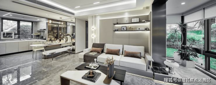 项目在高配置的基础上,还打造了6大智能化空间细节,包括客餐厅智能灯光控制、玄关天花感应灯、USB插座点位预留、感应夜灯、电动窗帘插座预留(客厅及主卧)、智能安防一键报警系统等。