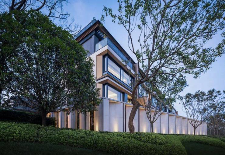 外立面方面,项目汲取广富林文化精髓再造东方屋宇,采用渐暖色石材、银灰色及香槟色铝板和涂料的组合,带来厚重与轻盈的平衡,在彰显文化豪宅的同时又包含国际风骨,整体呈现诗意东方之美。