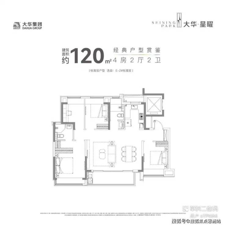 建面约120㎡的产品,市面上大多都是3房,但大华星曜做了4房的设计,实用性非常出色。