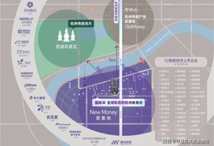 国际滨,全球知名的杭州新身份,五十家新经济上市公司总部所在地,全国一半以上电商、网红、创业公司栖息在此。国际滨板块中,新经济企业横向分布,与时代大道链接市中心,串联杭州传统老富和新贵人群。