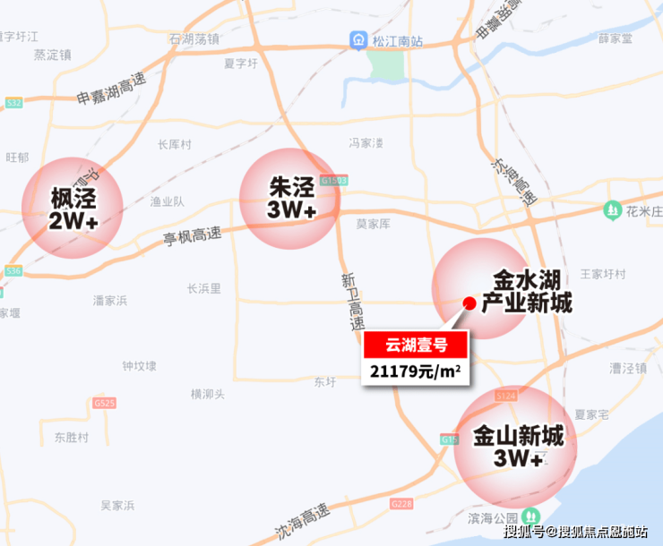 而云湖壹号所在的金水湖产业新城离市区比金山新城更近,但价格却便宜了约1万/㎡。