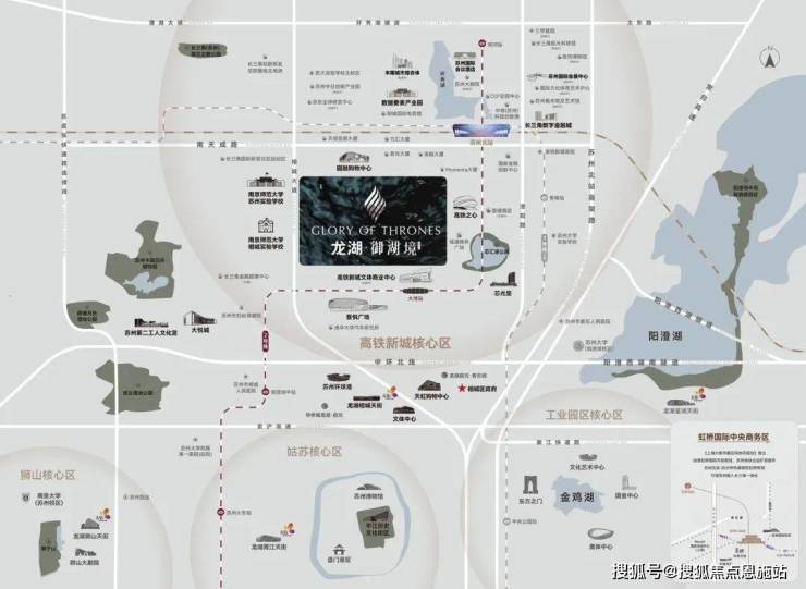 《苏州高铁新城总体规划(2013 - 2030)》把高铁新城划分为南中北部,其规划为从南向北逐步进行开发,其中南部片区是当下规划兑现程度最高的区域。