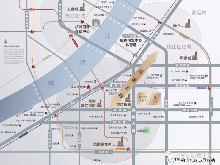 项目位于滨江与奥体交汇的核心板块--滨奥主轴之上,风情大道与建设二路交叉口,距离滨江核心区直线距离约1.9公里,距离奥体中心直线距离约2.5公里。本案方圆3公里范围,几乎同享滨江与奥体所有核心配套,如此得天独厚的地理位置,不仅完全满足滨江高端改善置业需求,也是目前杭州江南岸唯一一个,可同享滨奥核心资源的板块。