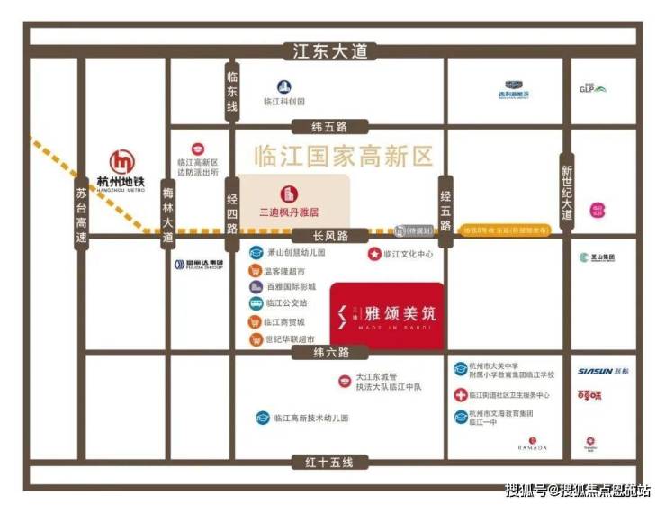 交通方面,在网红板块大江东,但偏离核心区。雅颂美筑距离规划8号线东延较近,虽然目前看轨道交通优势一般,好在自驾出行便利。同时,艮山东路过江隧道开通后,驾车往返下沙与江东片区,单趟最快用时仅3分钟左右,很大程度上方便了业主出行。